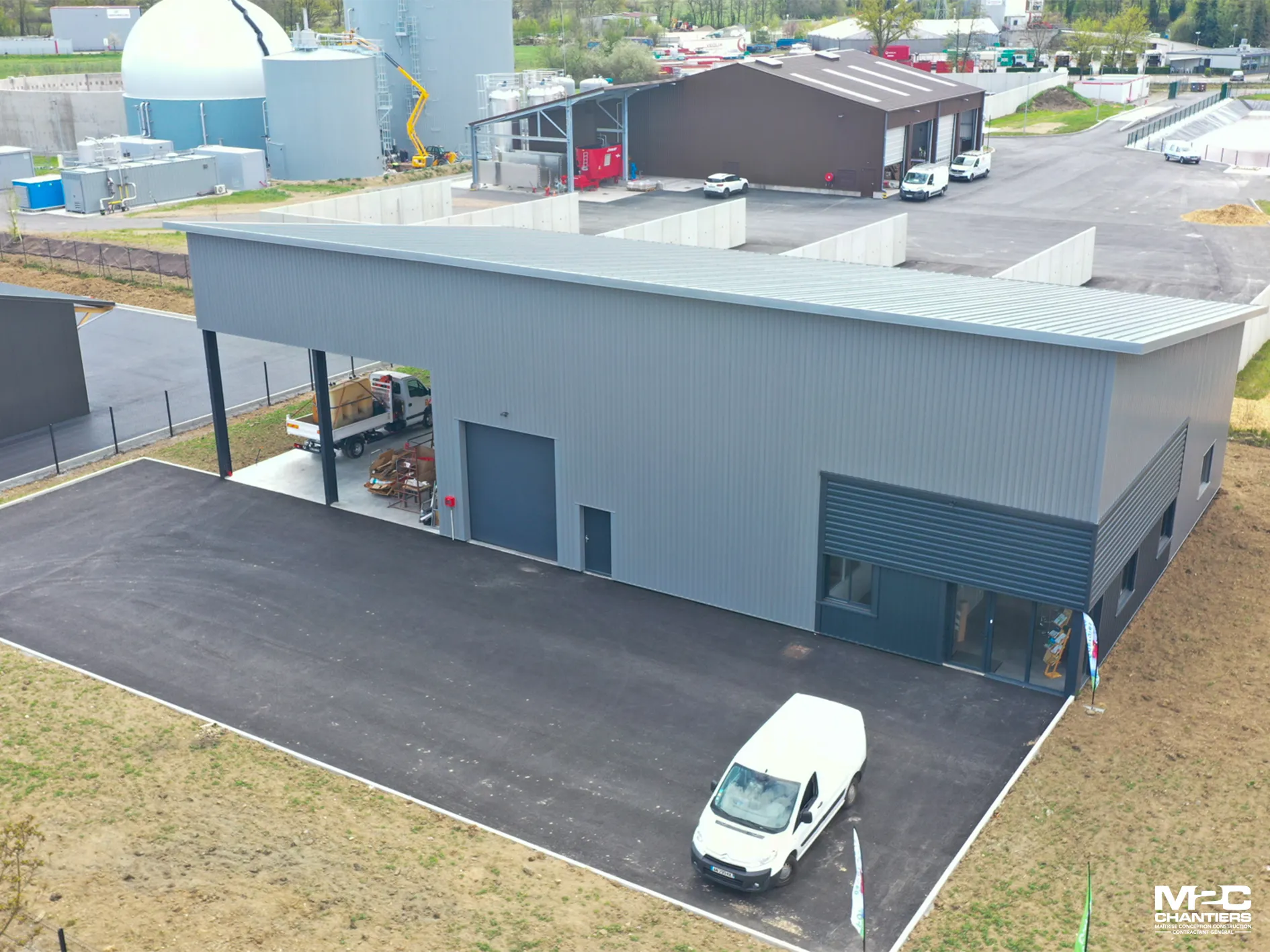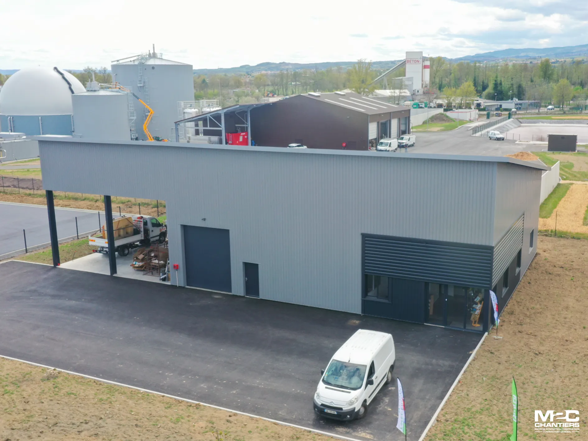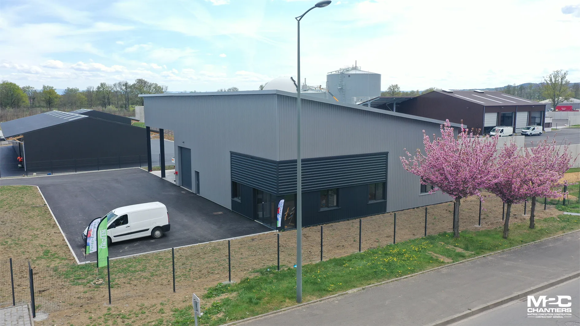 Forez Energie est une entreprise spécialisée dans le chauffage sanitaire et la ventilation, basée dans le département de la Loire (42). L'entreprise a fait appel à M2C Chantiers pour la réalisation de leur bâtiment. La particularité de ce dernier : une toiture monopente équipée de panneaux photovoltaïques. Grâce à cette réalisation, M2C Chantiers a pu proposer à son client une solution innovante et écologique.