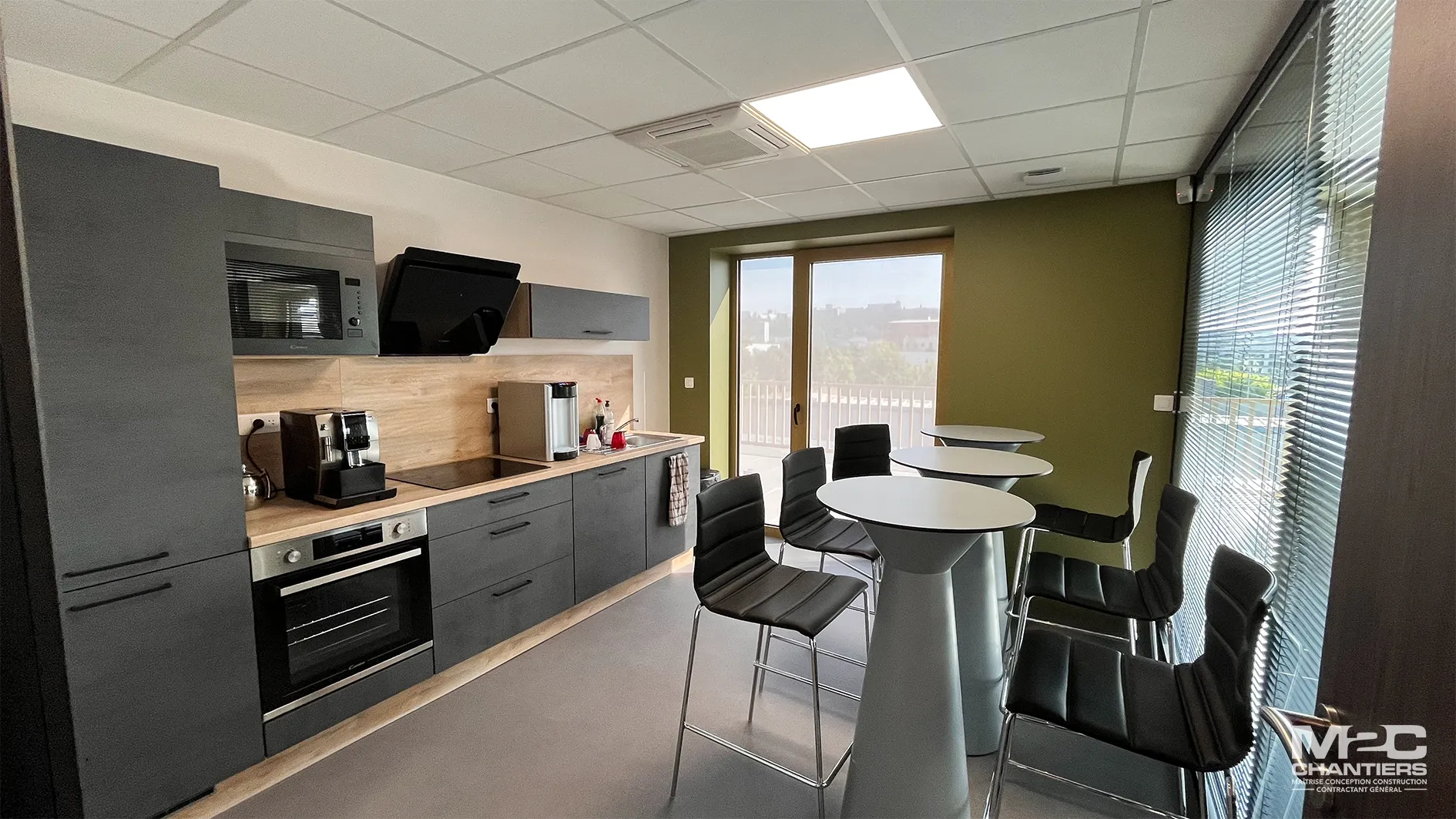 Explorez notre réalisation pour Transeurope CJ. Découvrez comment un aménagement intérieur conçu par M2C Chantiers peut transformer votre lieu de travail en un espace qui favorise bien-être, productivité